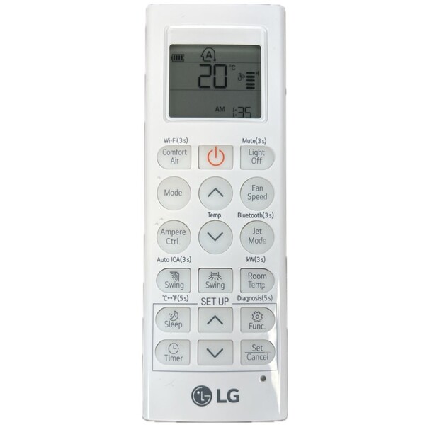 اسپلیت سرمایشی گرمایشی ال جی BMPU26T4W با یک ریموت کنترل پیشرفته به بازار عرضه شده است که به شما این امکان را میدهد تا به راحتی و از راه دور کولر گازی خود را مدیریت کنید. طراحی این ریموت به گونهای است که کاربری آسان و راحتی را برای کاربران فراهم میکند. با استفاده از دکمههای مختلف بر روی ریموت، میتوانید تنظیمات مختلفی را به سادگی اعمال کنید و به بهترین نحو از امکانات این کولر بهرهمند شوید. این دکمهها شامل: